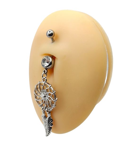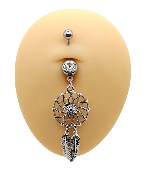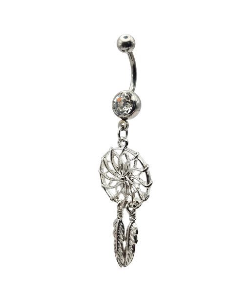 Belly Ring – Dreamcatcher & Feather – Crystal – 316L Surgical Steel