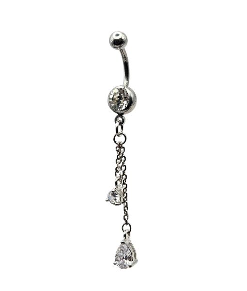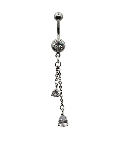 Belly Ring – J Chain – Crystal – 316L Surgical Steel