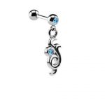 Jeweled Micro Barbell With Charm 1 (Aqua)