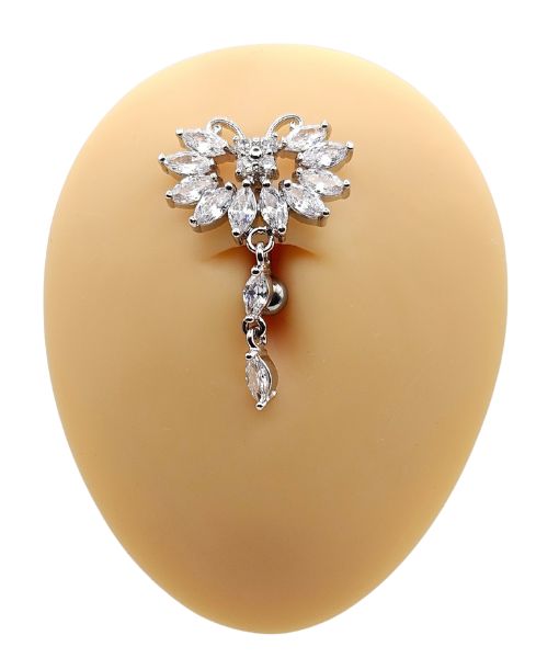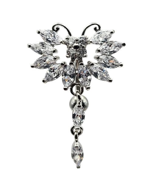 Belly Ring – Reverse Butterfly – Crystal – 316L Surgical Steel