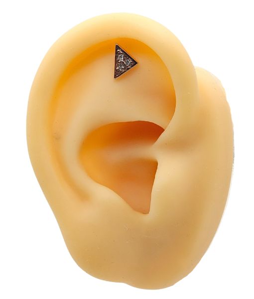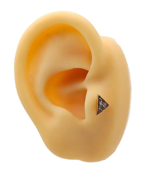 This rose gold tragus stud features a triangle design accented with subtle stones.